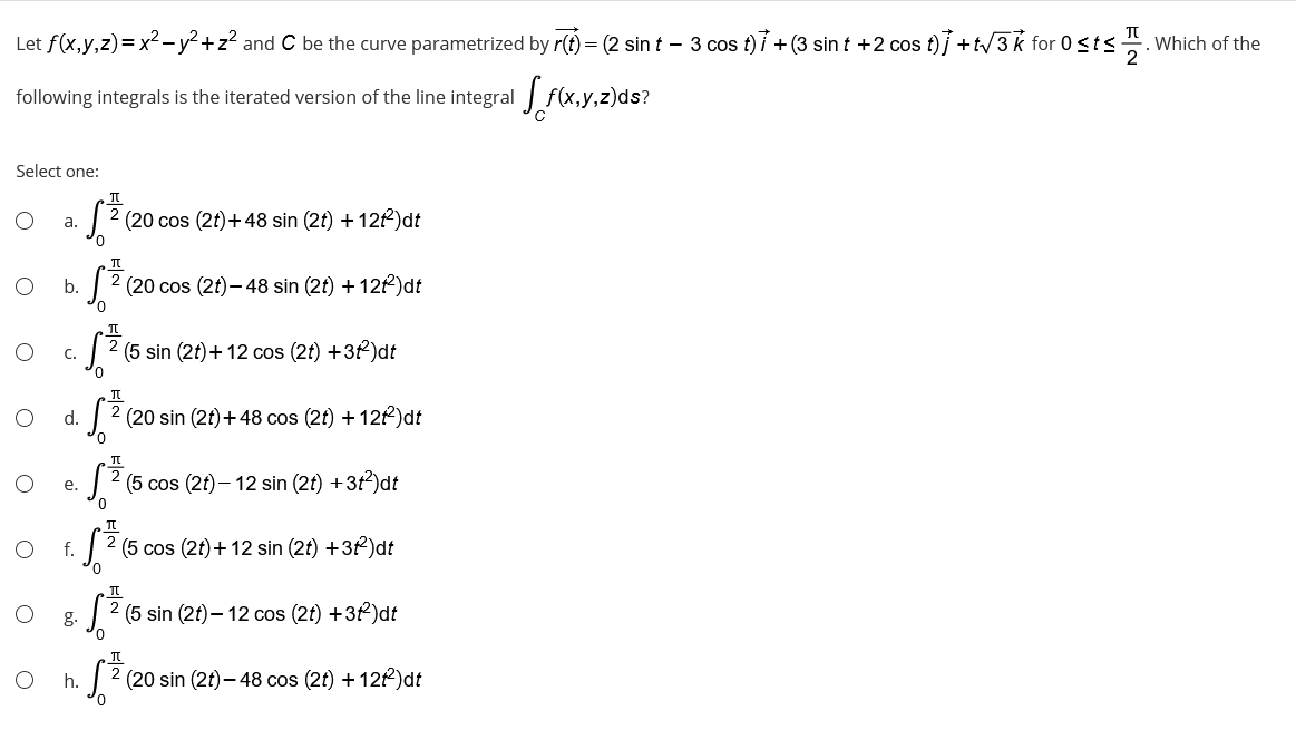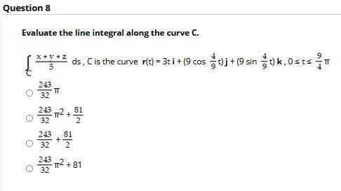 Solved Question 8 Evaluate The Line Integral Along The Curve Chegg Com