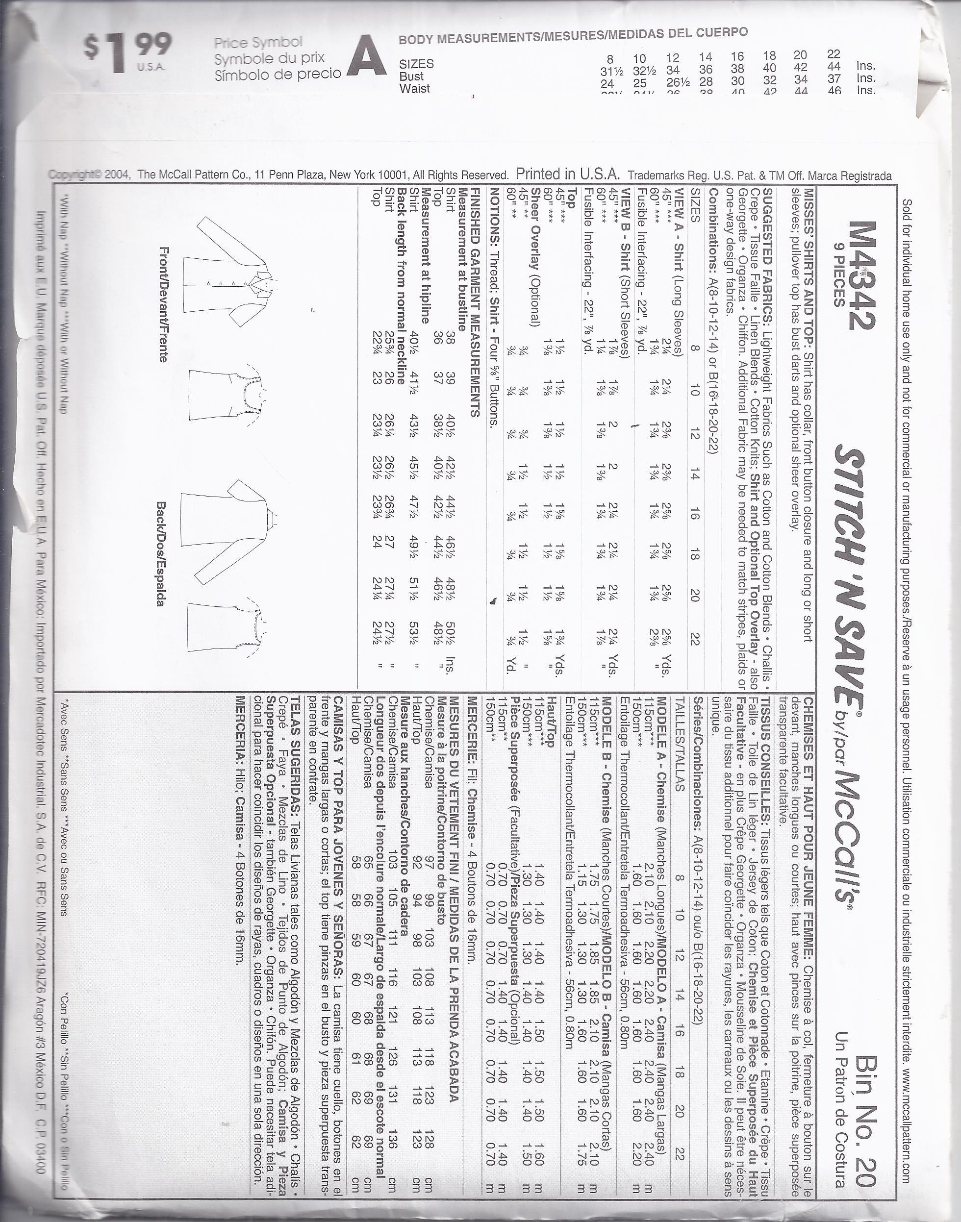 Mccalls Sewing Pattern M4342 From 2004 Misses Shirts And Etsy